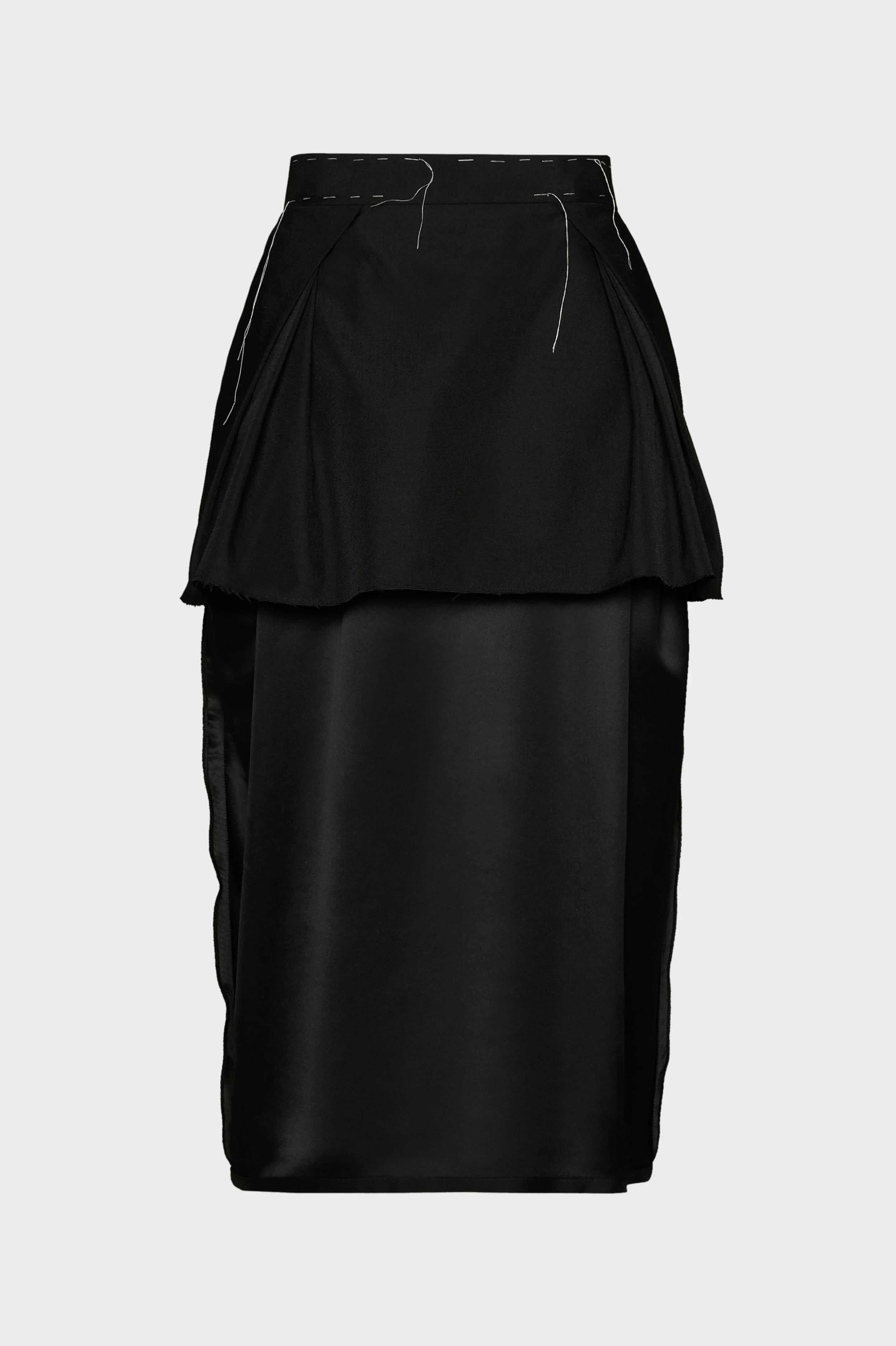 The layered cordura skirt is slashed to reveal the lining, creating a peplum silhouette. The work-in-progress stitches are present around the back zip and waist band with loose threads to indicate an unfinished aesthetic. Maison Margiela’s signature, the Four stitches, appear at the back; the opposite of a label. Product Details Item ID S51ME0021S78413900 Primary fabric: 100% nylon Secondary fabric: 100% silk Pocket lining: 100% cotton Two layers midi skirt in cordura and silk Lining revealed Hand-stitched basting stitches Zip closure at the back Backslit Four stitches at the back Made in Italy Model is 180cm tall and wears a size 40.