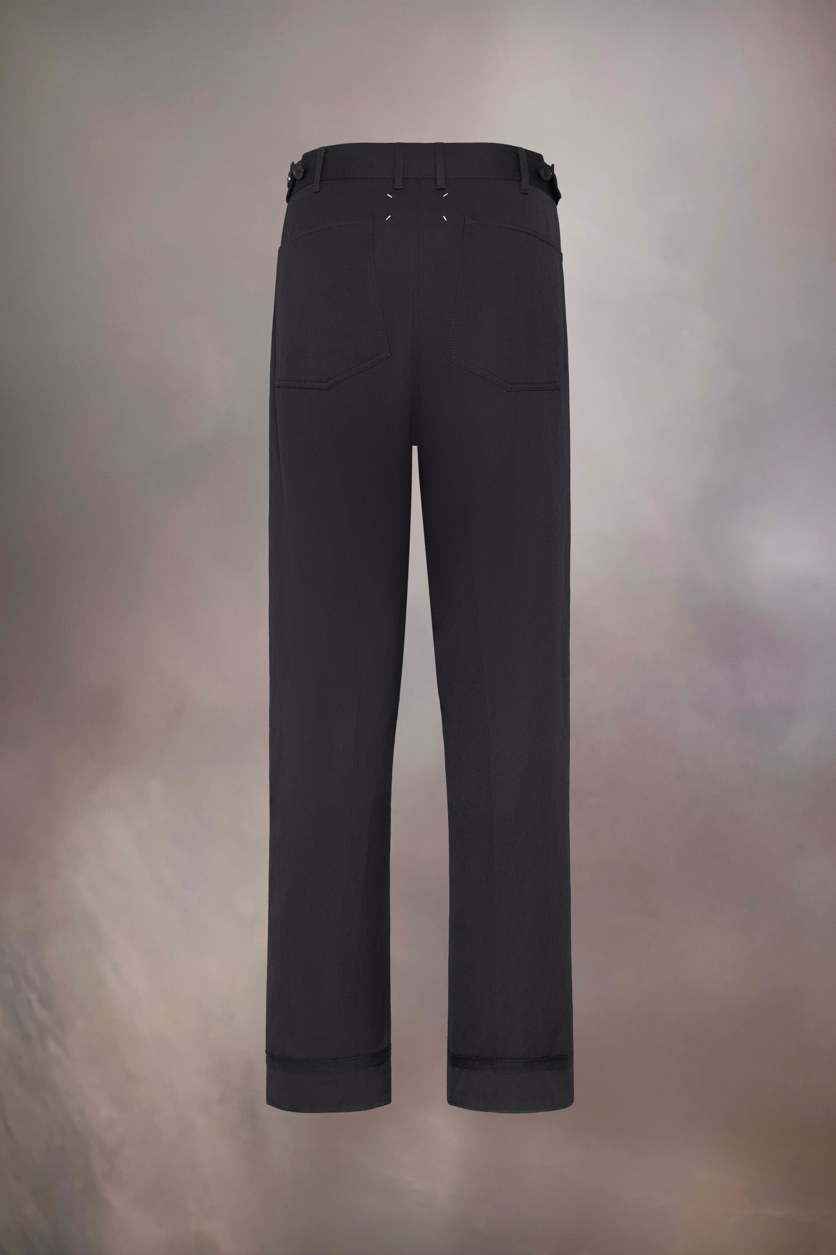 The classic trousers are crafted from wool and linen, and feature pockets and the Margiela hook closure. They are pleated, finished with belt loops and a tonal band around the ankle. Maison Margiela's signature, the four stitches, appear at the back; the opposite of a label. Product Details Item ID S50KA0678M35287855 Primary Fabric: 51% Linen 49% Wool Pocket Lining: 100% Cotton Lining: 65% Polyester 35% Cotton Wool linen barathea trousers Regular waist Wide leg Belt loops Front pleats Horn button closure Maison Margiela hook Side pockets Four stitches at the back Made in Italy