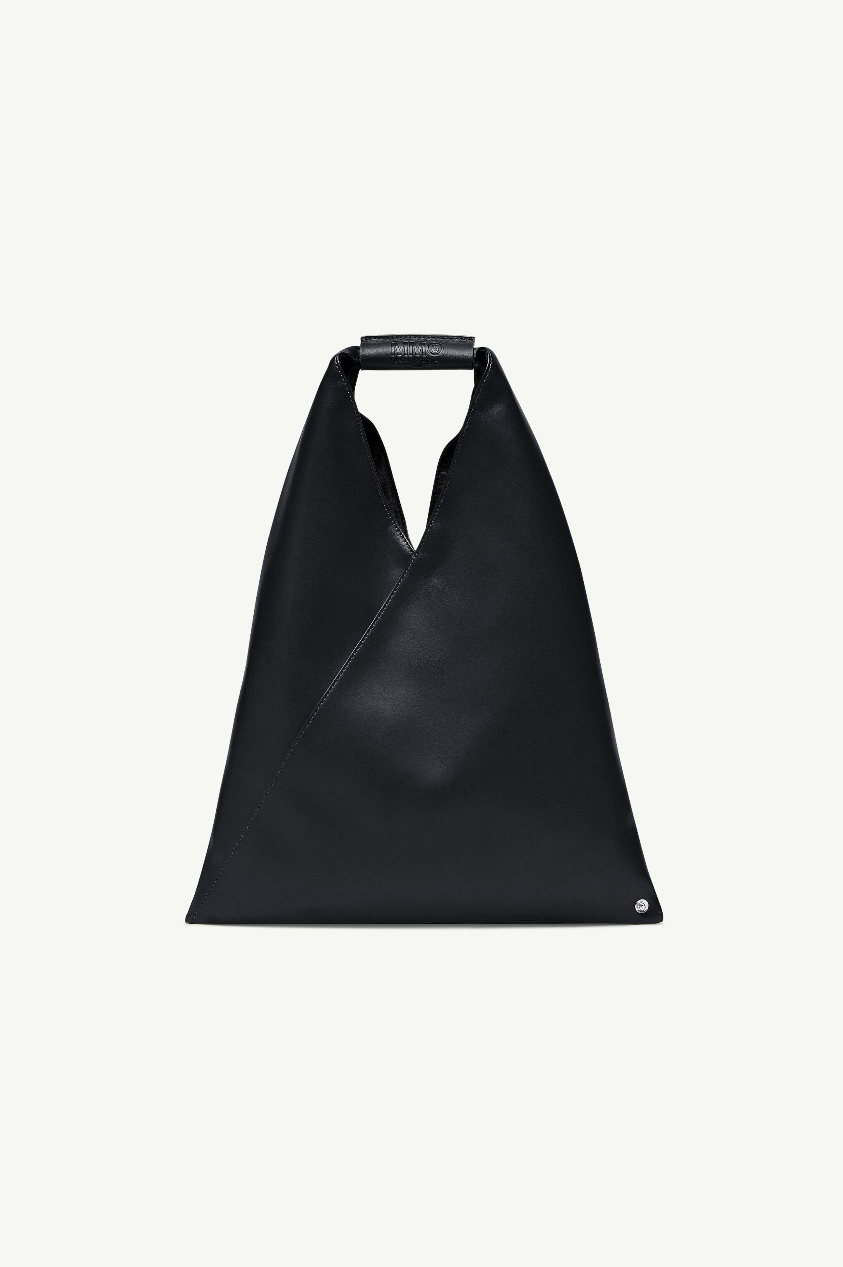 Japanese bag classic small in PU leather. First introduced as part of the Autumn-Winter 2009 collection, the Japanese bag has since become MM6’s most emblematic accessory. Its distinctive triangular silhouette is inspired by the Japanese art of paper folding: origami. The buttons at its edges allow for the bag to change form through folding, evoking the Maison’s deconstructionist design codes. Each season, the Japanese bag is reinterpreted in additional sizes and a variety of innovative fabrics, rendering the accessory timeless. Product Details Item ID S54WD0043P4313T8013 Outer: 100% Faux leather Contrast: 100% Leather Lining: 100% Nylon All-over logo lining Two different sections sewn together Two snap buttons on the bottom to change the shape of the bag Leather cuff with numeric logo White stitch line at the back Button closure on leather detail Inside pocket with button closure Internal black label with white logo
