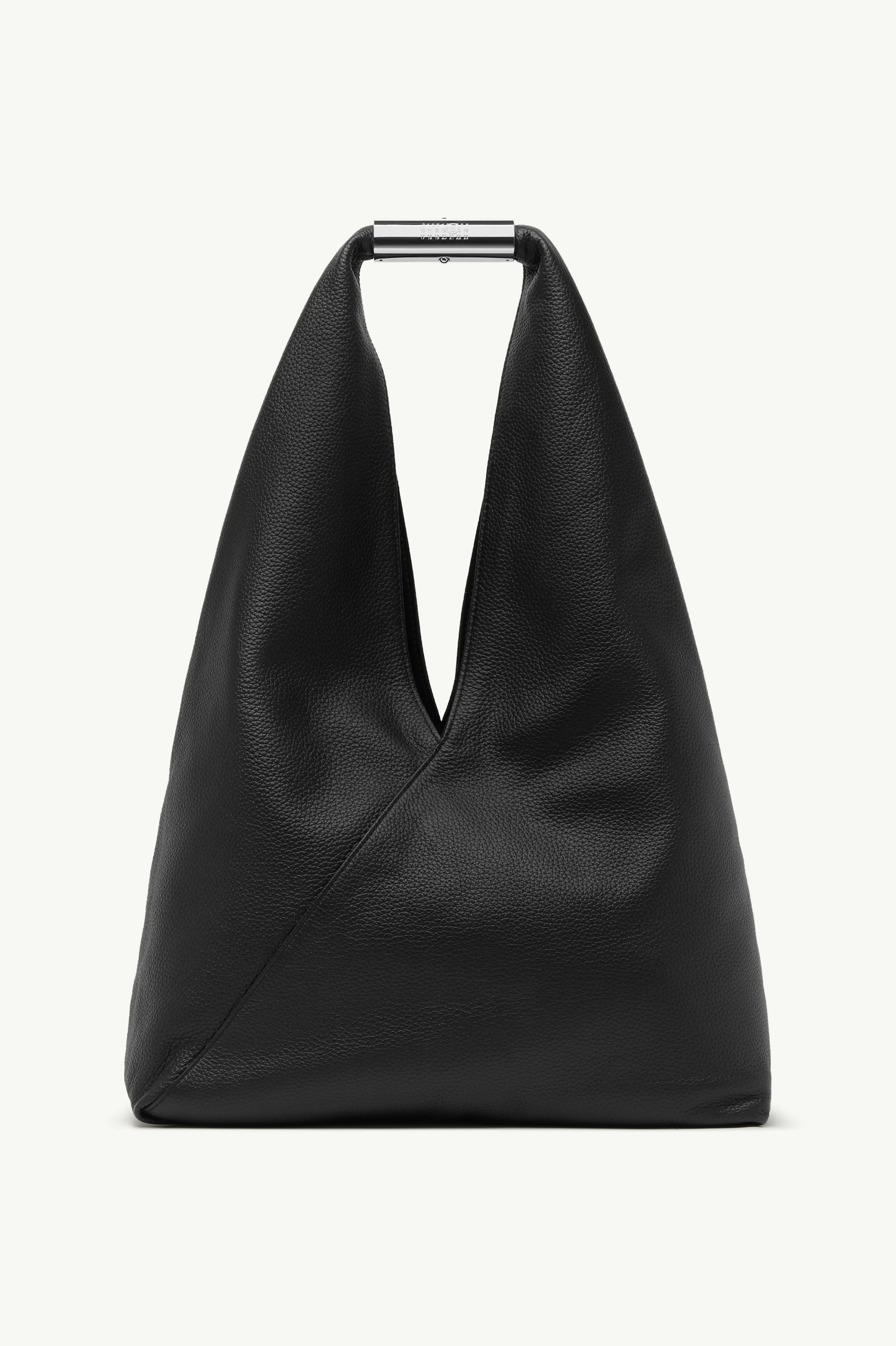 The Japanese Bag continues its evolution in lightly padded grainy leather, redefined by a structured bottom and jewel handle that opens, offering ease of access. Conceived in 2009, its origami-inspired triangular folds remain intact, balanced by the precision of metallic hardware. At the back, the Maison’s white stitch line underscores its identity. Product Details Item ID SB6WD0043P7255T8013 - Body: 100% calf leather - Lining: 100% cotton - Metallic parts: 100% zama - Grainy leather texture - Fixed metal handle - Magnetic closure on handle - White stitch line at the back - Clean with a mild leather cleanser without rubbing