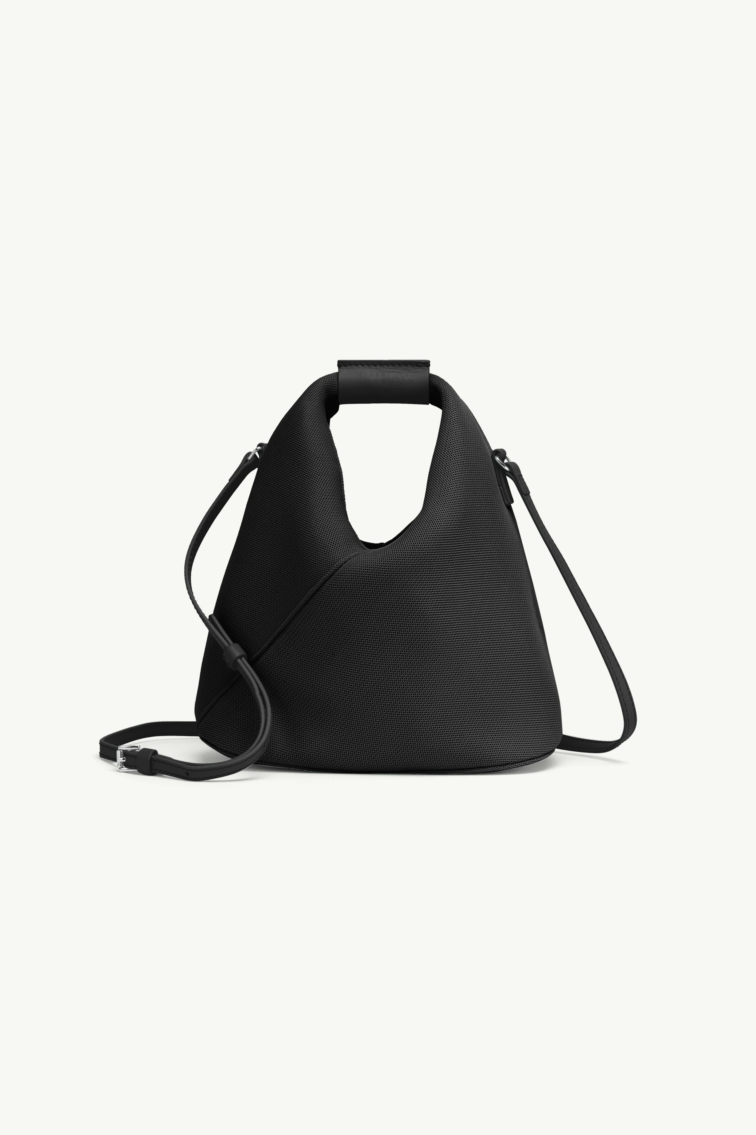 Crafted from mesh, the numeric crossbody bag is a dual-wear design that can be worn crossbody with its adjustable shoulder strap or carried by hand like a pochette. The brand's numeric signature is embossed on the design's leather cuff and the bag is detailed by button closure. MM6’s discreet yet distinct signature, a horizontal line of white stitches, is found on the back. Product Details Item ID SB6WD0026P6414T8013 Body: 60% polyester 40% polyurethane Contrast: 100% calf leather Lining: 100% polyester Metallic parts: 100% zinc Adjustable shoulder strap Embossed logo detail on handle Magnetic closure White stitch line at the back Inside logo stamping