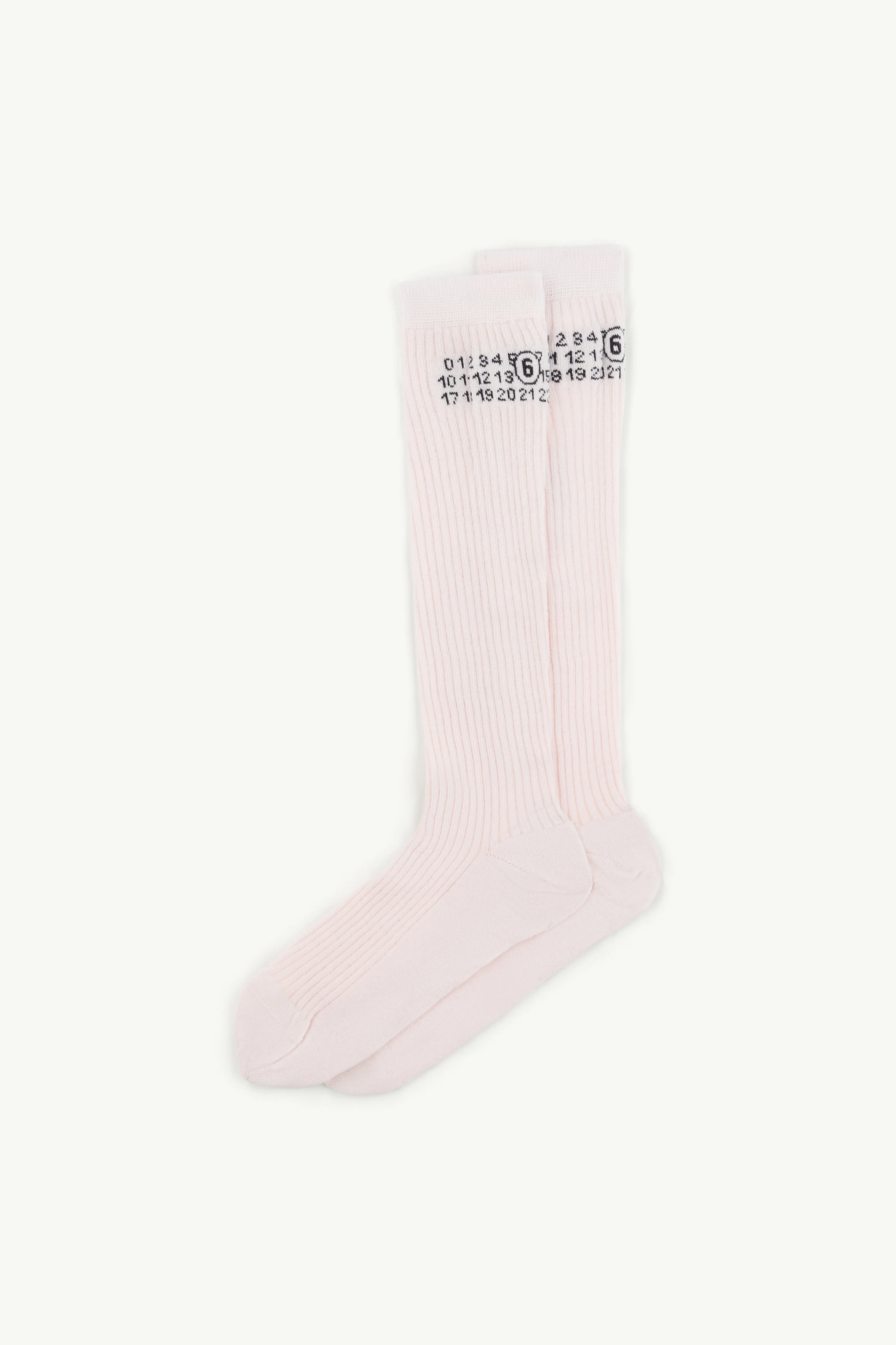 Knee-high socks with a ribbed structure and elongated silhouette. Finished with the MM6 numeric artwork at the top. Product Details Item ID S52TL0038M13244386