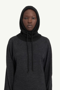 A reinterpretation of the classic balaclava, this knitted hood draws on MM6’s Reduced Panel concept – stitched seams reduce volume without removing excess fabric, leaving the making process exposed. Ribbed panels frame the face and neck, finished with the numeric signature label at the back. Product Details Item ID S62TB0005M13187900 Primary fabric: 80% Wool, 20% Polyamide Knit hood Ribbed hem and face opening Reduced panel construction Drawstring fastening Numeric signature label at the back