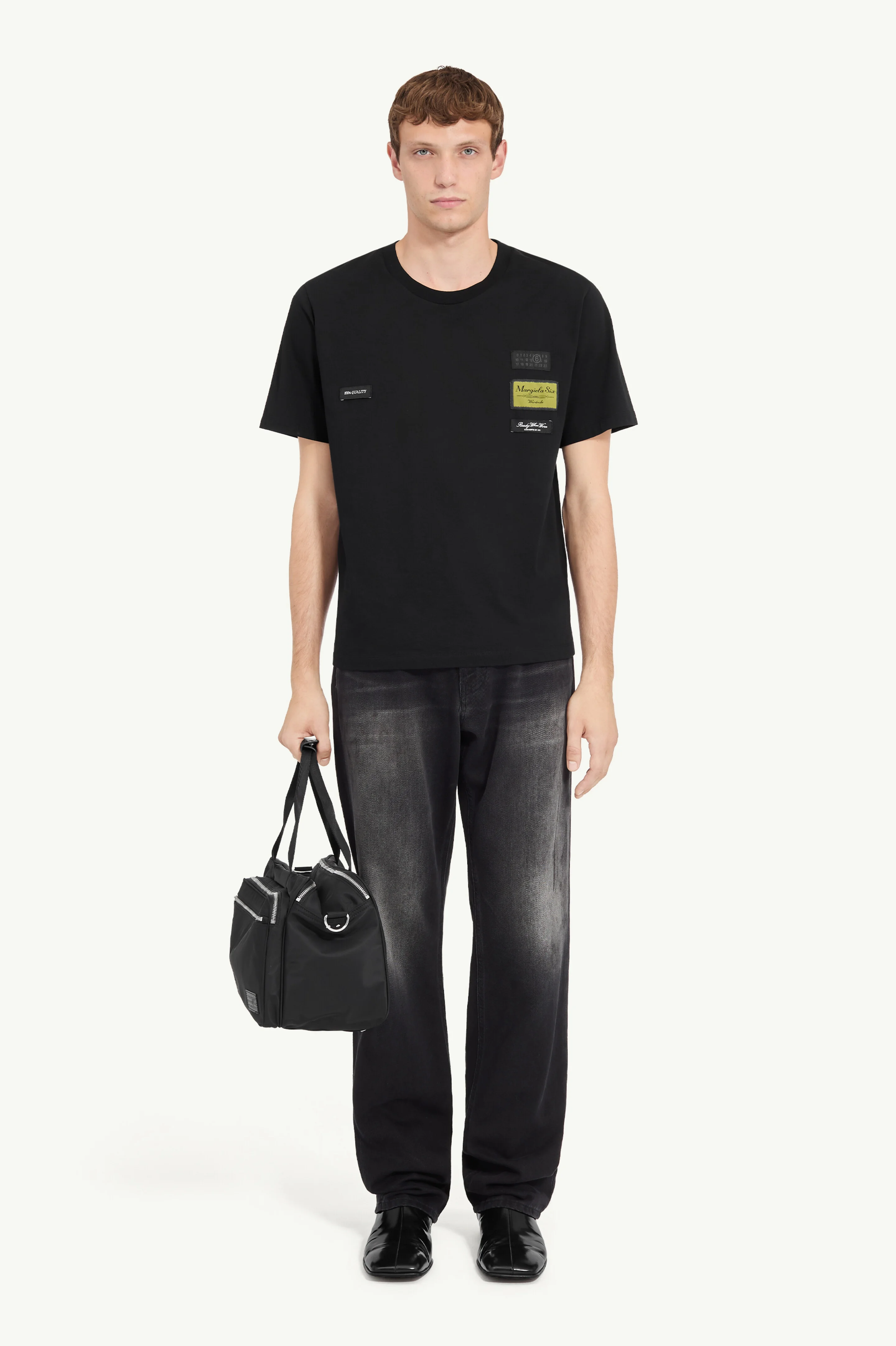 This cotton jersey T-shirt is detailed with jacquard labels, typically found on a garment’s interior, reworked as bold exterior decoration. The unexpected placement transforms functional tags into graphic accents, reflecting the Maison’s subversive approach to construction. At the back, the MM6 white stitch line asserts its signature. Product Details Item ID SH0GC0069S24311900 Primary fabric: 100% cotton Cotton jersey Patch details on the front Short sleeves Round neck White stitch line at the back Made in Italy