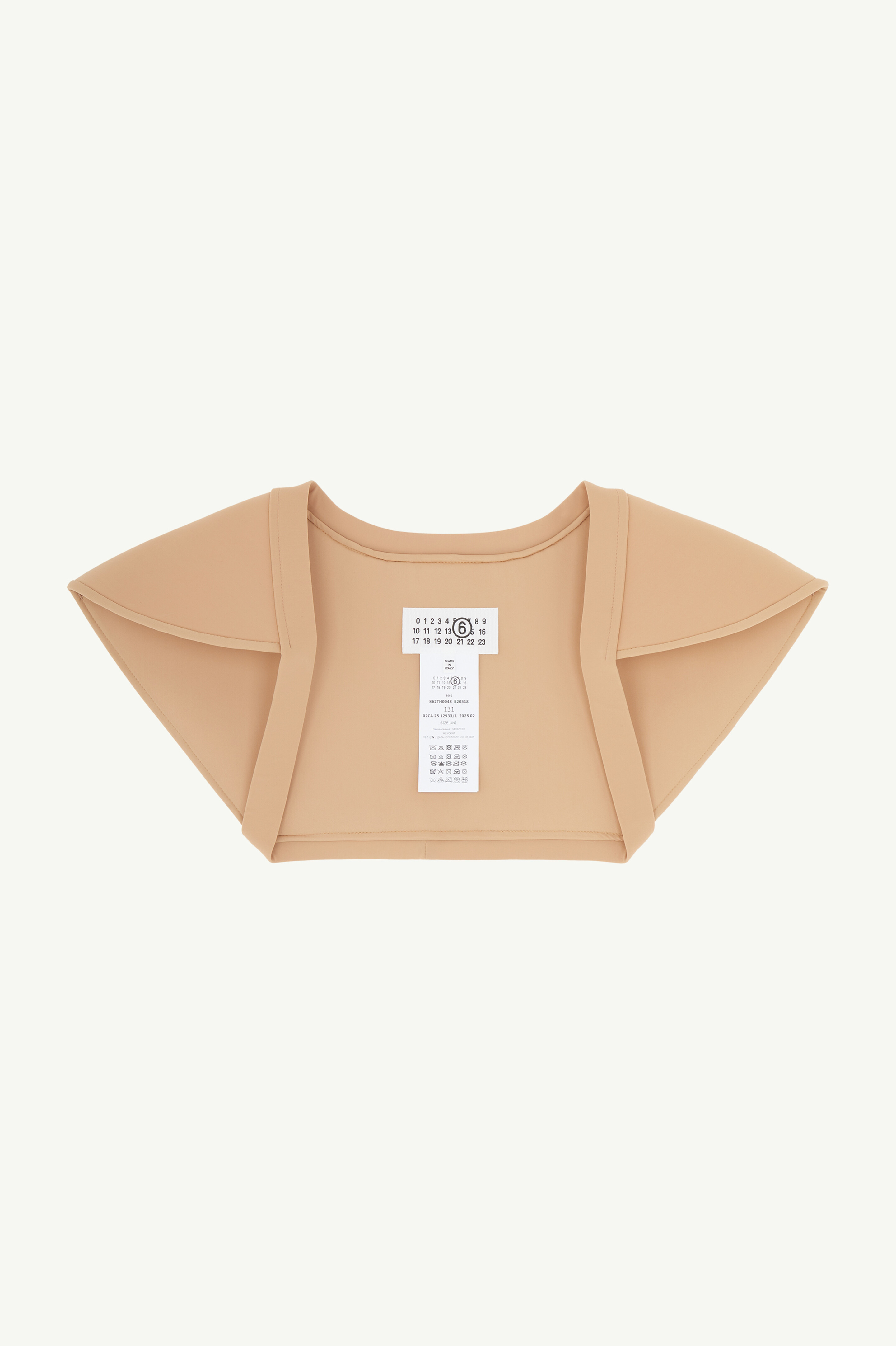 Reworking a shoulder piece from the archive, this sculptural bolero channels ’80s glam through its angular V-silhouette. The sharp lines and minimal construction emphasise form over embellishment, offering a ready-when-worn attitude. Finished with a tonal numeric signature at the back. Product Details Item ID S62TH0048S20518131 Primary fabric: 73% Polyamide, 27% Elastane Structured padded bolero Angular shoulders Tonal numeric artwork at the back Made in Italy