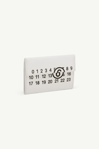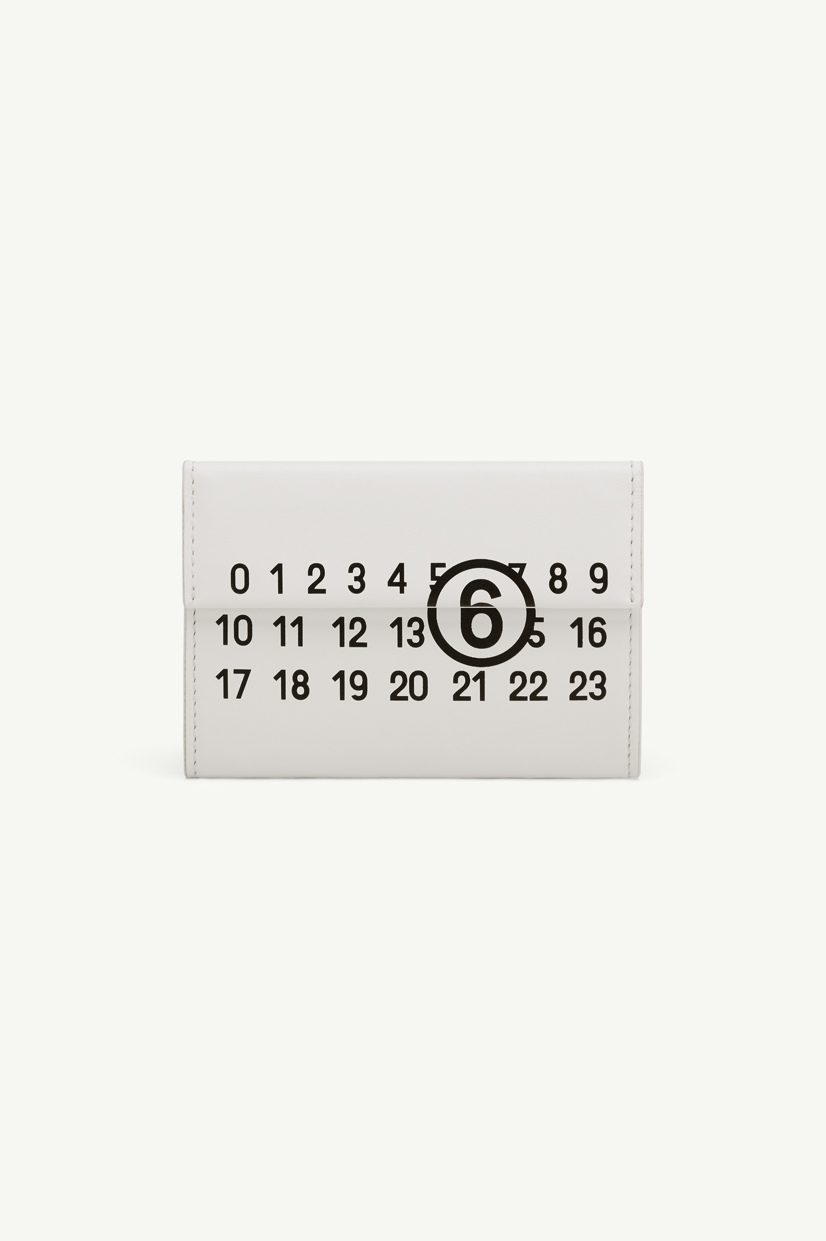 From the MM6 Spiga Capsule, this leather wallet becomes a canvas for the Maison’s numeric code. The logo is printed across its fold, split between front and back, aligning only when the piece is closed. An everyday accessory takes on a graphic gesture, balancing function with disruption. Product Details Item ID SA6UI0036P8881T1003 Body: 100% Calf Leather Inside: 100% Viscose-Rayon Trifold wallet in calf leather Four card slots Snap button closure MM6 numeric signature at the front White stitch line at the back