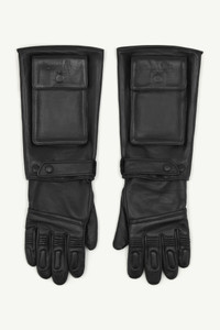 This two-piece lambskin glove set is part of the collaboration between MM6 and Agnelle, the French glove maker established in 1937. Designed with modularity in mind and lined with soft silk, they can be worn alone or with the zipped cuff extension, which features exaggerated pocket flaps and tonal fastenings. A functional reinterpretation of classic glove-making, grounded in utility and finished with MM6’s distinctive numeric artwork. Product Details Item ID SH2TS0004M07014900 Primary Fabric: 100% Glazed Lambskin Lining: 100% Silk Two-piece glove set Removable extended cuffs with zip closure Dual pouch pocket and snap fastenings Padded silhouette Stitched finger articulation Debossed MM6 numeric artwork