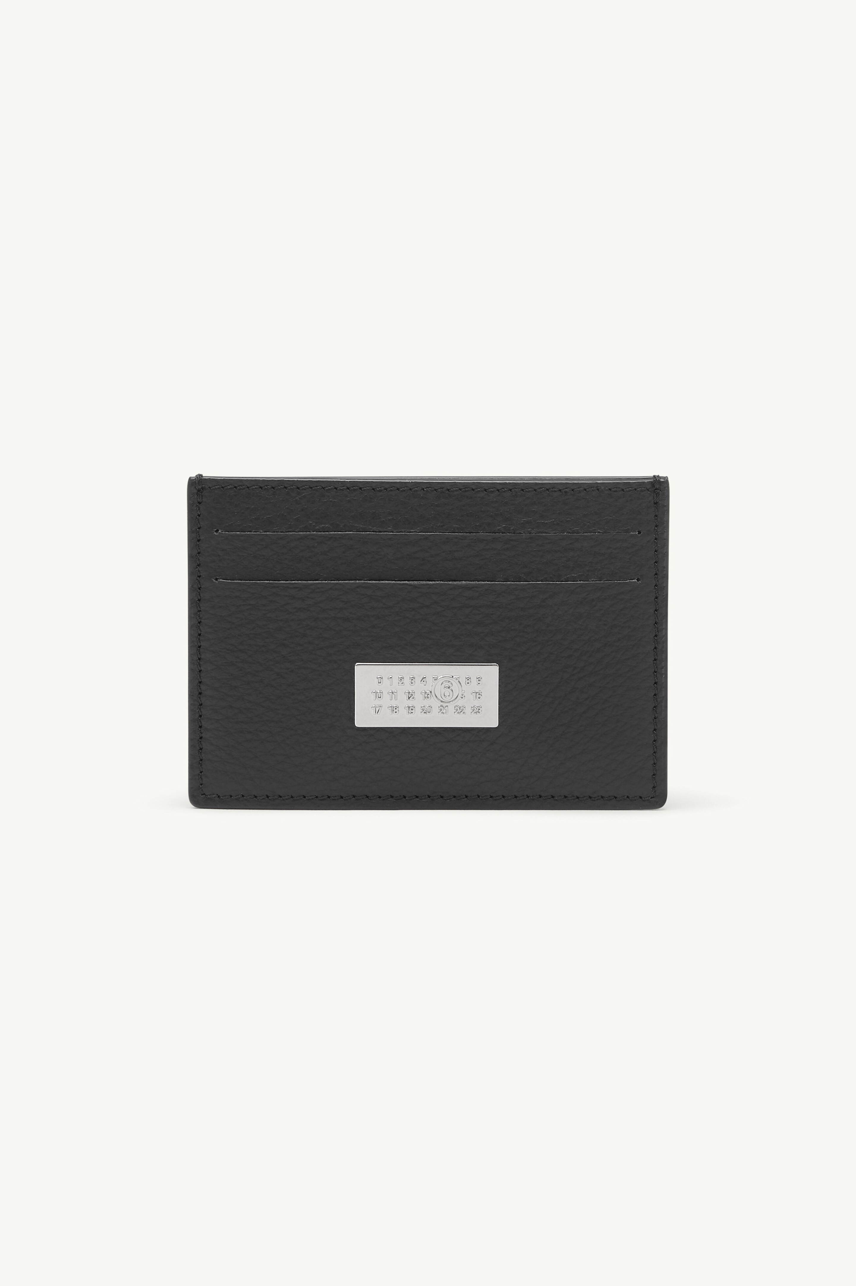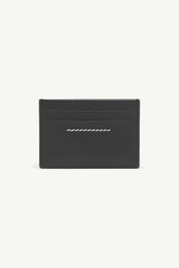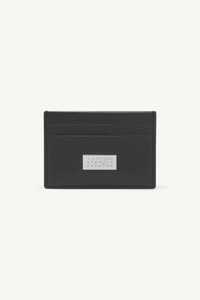 Crafted in grainy leather, this numeric card holder refines an everyday essential with MM6’s pared-back aesthetic. The shiny plaque contrasts its textured surface, while two card slots on both sides ensure practicality. The Maison’s white stitch line at the back completes the design with a discreet yet distinctive signature. Product Details Item ID SA5UI0013P8336T8013 Body: 100% Calf Leather Inside: 76% Polyurethane 17% Polyester 7% Viscose-Rayon Metallic Parts: 100% Brass Cardholder in grainy leather MM6 numeric signature at the front White stitch line at the back Four card slots Flat pocket Made in Italy