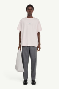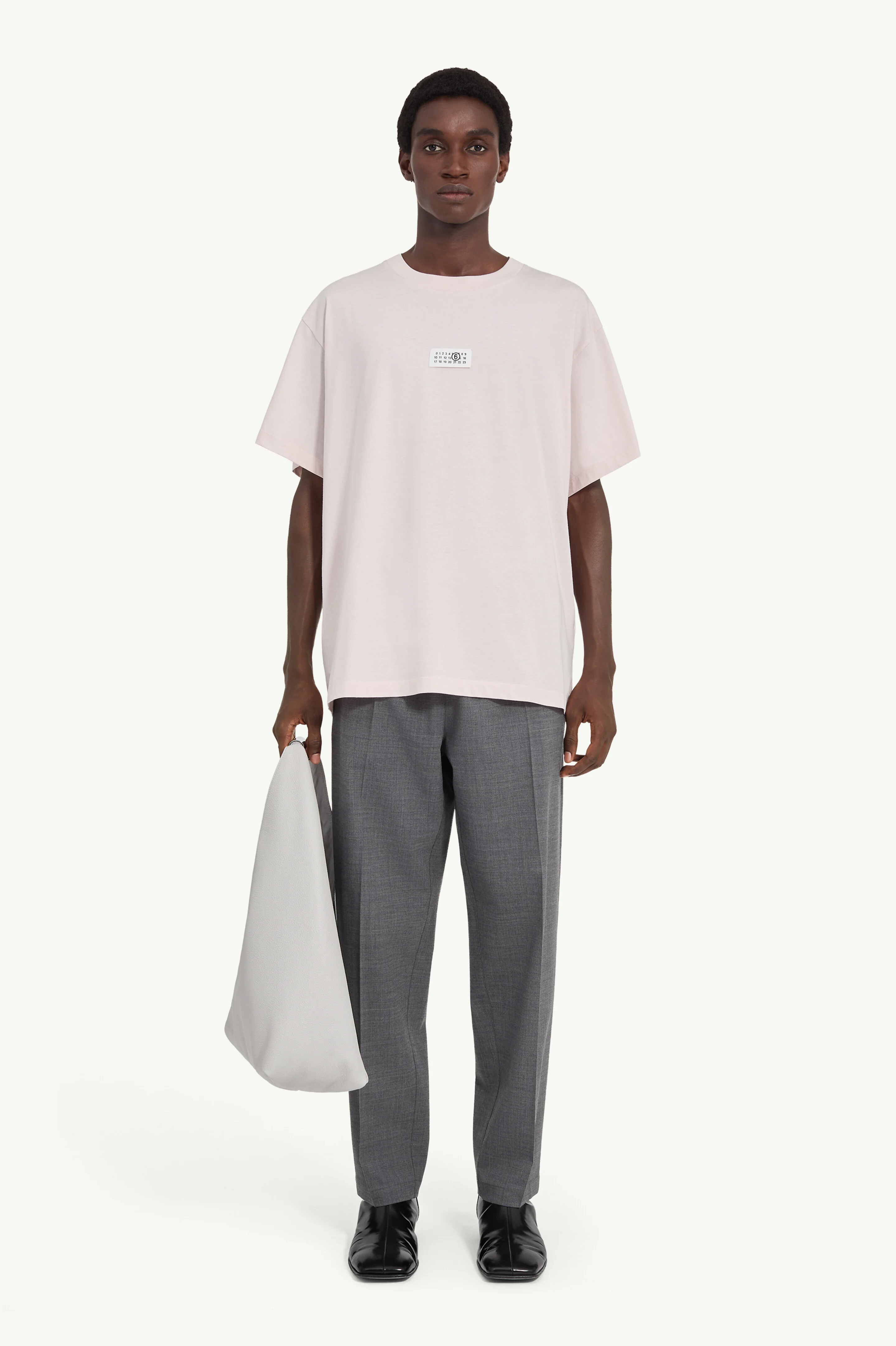 Cut from cotton jersey, this T-shirt is defined by its relaxed silhouette and clean finish. At the chest, a numeric artwork label highlights MM6’s emblematic detailing, transforming a functional code into a graphic focal point. At the back, the MM6 white stitch line reinforces its signature identity. Product Details Item ID SH0GC0071M20170231 Primary fabric: 100% cotton Application: 98% cotton 2% elastane-spandex Cotton jersey Short sleeves Crew neck Logo label at the front White stitch line at the back Made in Italy