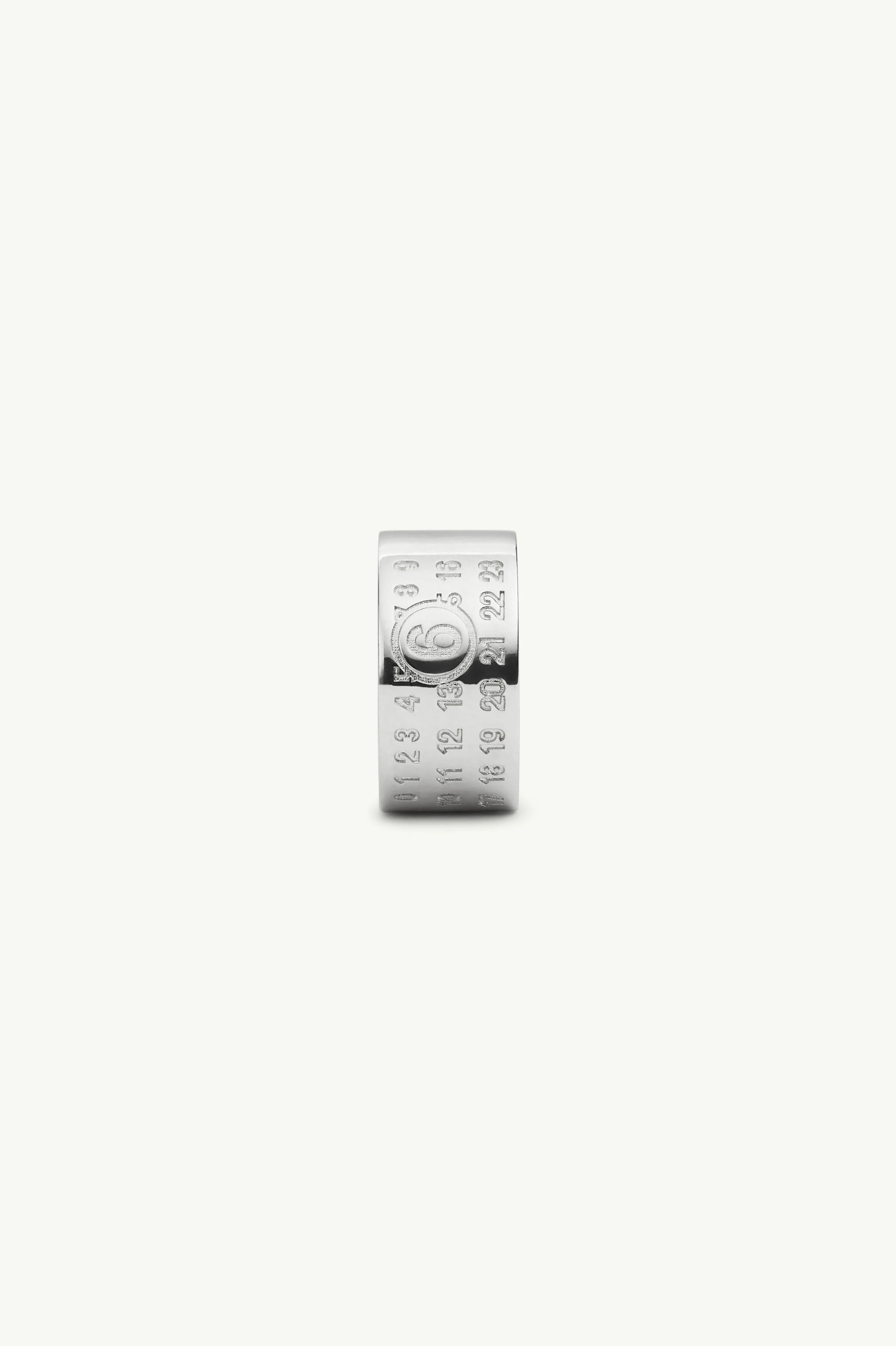 A wide, sculptural ear cuff in silver-toned brass, defined by engraved numeric detailing that recalls MM6’s subversive signature. Designed without the need for piercings, it slips easily onto the ear, transforming an everyday accessory into a statement of quiet disruption. Product Details Item ID SM6VG0113P6469951 Body: 100% brass One size Brass ear cuff Wide band with embossed numeric details Single piece Engraved brand logo Avoid salt, chlorine water and aggressive liquid Made in Italy