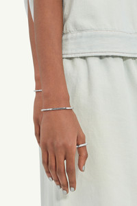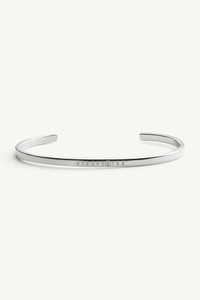 Brass cuff bracelet with 3 mm width. The MM6 numeric signature is engraved on the front. Product Details Item ID SM7UY0054SV0310951 Composition: 100% brass Width: 3 mm Polished silver Numeric signature bracelet cuff Engraved MM6 numeric signature all-around Made in Italy The item comes in a white zipped bag