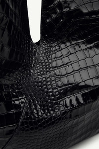 Crafted in high-shine crocodile-embossed faux leather, this oversized New Japanese bag reframes the Maison’s iconic design with amplified texture and scale. The structured silhouette and debossed signature handle echo its origami origins while lending a sculptural new dimension. Product Details Item ID SB6WD0044P8650T8013 Primary material: 100% Calf leather Secondary material: 100% Cotton Metallic hardware Oversized Japanese bag in crocodile-embossed faux leather Folded silhouette with angular construction Adjustable shoulder strap Brass handle with engraved logo White stitch line at the back