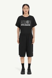 These running shorts, crafted from lightweight and flexible fabric, showcase the MM6 X Salomon collaboration in every detail. The elasticated waist ensures freedom of movement, while the MM6 numeric signature and Salomon label at the front bring an athletic yet progressive spirit. Finished with a back zip pocket for added utility. Product Details Item ID S52MU0131M35417900 Primary fabric: 85% nylon, 15% elastane-spandex Running fabric short Elasticated regular waist MM6 numeric signature and Salomon label at the front Raw-edge hem Side pockets White stitch line at the back Zip pocket at the back