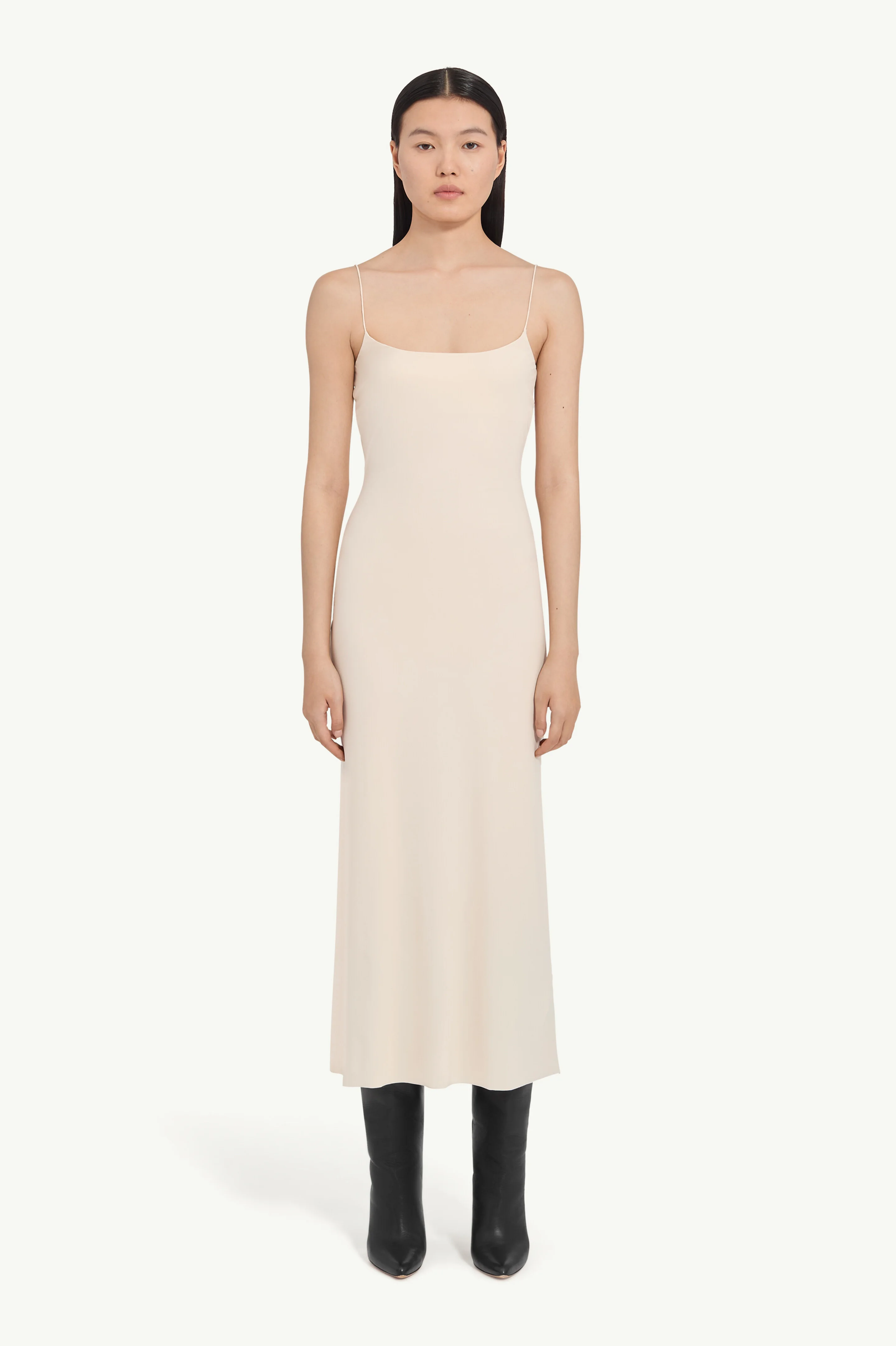 Striking in its simplicity, this slip dress pairs sharp, minimalist tailoring with fluid draping. The straight neckline and fine straps bring a contemporary edge, while the maxi length exudes quiet drama. The discreet MM6 white stitch at the back adds a quiet touch of deconstruction, embodying the Maison's signature. Product Details Item ID S52DG0022S20518118 Primary fabric: 73% polyamide-Nylon, 27% elastane Sleek maxi dress with spaghetti straps Scoop neckline, seamless silhouette Visible seam lines on sides and back No fastenings, buttons, or zippers Slim cut gradually flares to hemline White stitch line at the back Made in Italy Model is 179 cm tall and wears a size M.