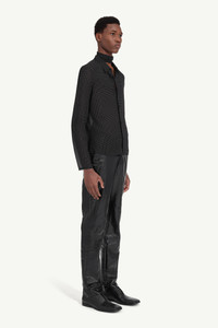 A sheer mesh shirt with a hypnotic, radiating dot pattern that nods to the MM6 archive and the expressive wardrobe of jazz legend, Miles Davis. The print is applied using a flat garment technique, ensuring each piece is subtly distinct. Cut for a close silhouette with a classic point collar, this shirt balances graphic impact with lightweight ease. The white stitch line at the back signals MM6’s signature. Product Details Item ID SH2DT0023M35632001S Primary Fabric: 100% Polyester Fitted mesh shirt with dotted starburst print Classic collar Front button placket Long sleeves White stitch line at the back Made in Italy Model is 190 cm tall and wears a size 48.