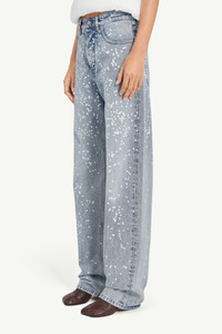 These straight-leg jeans feature a trompe l’oeil interpretation of confetti, drawn from the Martin Margiela Summer 2009 archive. The relaxed silhouette and washed finish offer contrast to the graphic, all-over motif. Finished with the MM6 numeric artwork to the back pocket. Product Details Item ID S62LB0207M30018968 Primary fabric: 100% Cotton Straight-leg denim jeans Five-pocket construction Trompe l’oeil confetti print MM6 numeric artwork on back pocket Made in Italy Model is 180 cm tall and wears a size 28.