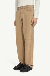 Treated for a grainy, sand-washed effect, these denim jeans convey a raw, tactile character. The straight-leg cut is enhanced by utilitarian knee panels and classic rivet detailing. A tonal leather patch bearing the Maison’s numeric artwork sits at the back, finished with its signature single white stitch. Product Details Item ID SH0LA0009M30050123 Primary fabric: 100% cotton Coating: 100% polyurethane Pocket lining: 100% cotton Full-length, straight-leg fit Visible knee seam detail Five pockets construction Zip and button closure at the front White stitch line at the back Made in Italy