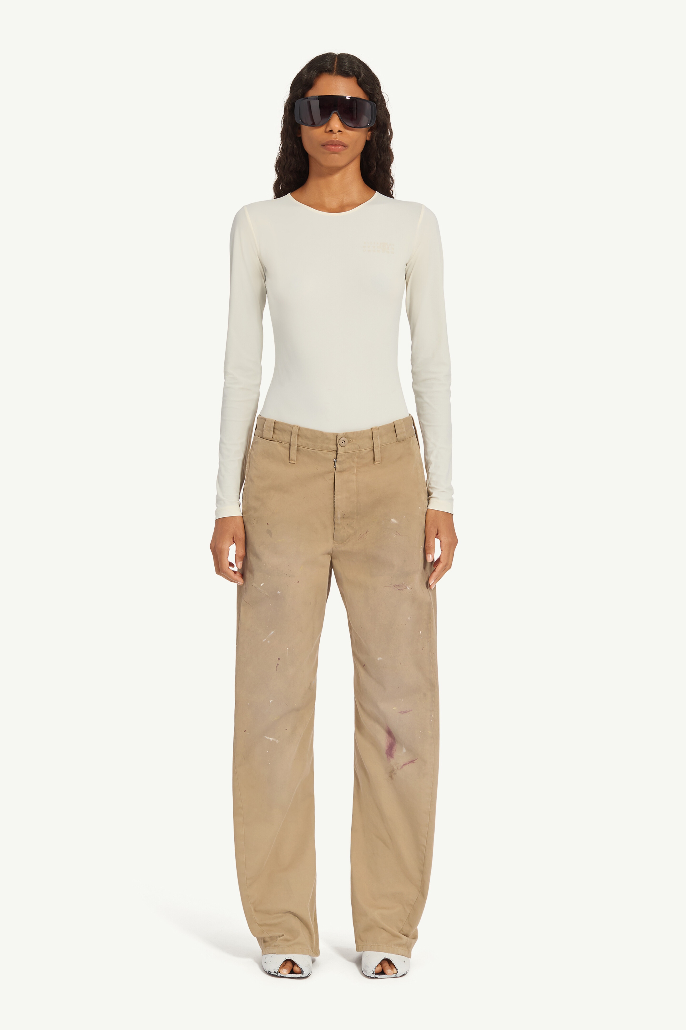 These cotton gabardine trousers balance disciplined tailoring with unruly paint traces that implies an ongoing process. Belt loops and back button detailing communicate structure, while the Maison’s white stitch line provides a discreet, nonconformist signature. Product Details Item ID S62KB0230M35435124 Primary Fabric: 100% Cotton Pocket Lining: 100% Cotton Cotton gabardine trousers Regular waist Side pockets Straight leg Handmade painted treatment White stitch line at the back Made in Italy
