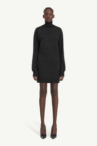 This wool-blend mini dress channels MM6’s irreverent approach through sharp, archive-inspired tailoring. A reworked shoulder piece from the Maison’s archive creates a pronounced V-silhouette, defined by a structured funnel neck and angular shoulders. Ready-when-worn, with or without its built-in structure. At the back, the MM6 white stitch line asserts its signature. Product Details Item ID S62DA0052M13188855 Primary fabric: 50% Polyester, 50% Virgin Wool Long-sleeved mini dress in a wool blend High funnel neck White stitch line at the back Made in Italy Model is 179 cm tall and wears a size M.