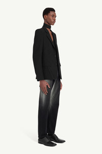 Precision-tailored in a structured silhouette, this jacket features a notched lapel, flap pockets and subtle pressed crease impressions – a nod to the Maison’s conceptual play on memory and wear. An elevated layer with a lived-in inflection. The MM6 signature white stitch line appears at the back. Product Details Item ID SH2BN0016M35436899 Primary Fabric: 55% Polyester, 45% Virgin Wool Structured blazer with all-over pressed crease detailing Button fastening Notched lapel Flap front pockets Single vent at the back Made in Italy Model is 190 cm tall and wears a size 48.