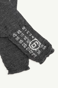 Emblazoned with the numeric emblem, these wool gloves are constructed with visible distressing – a quiet disruption to a cold-weather staple. The frayed finish and textural irregularities reflect the brand’s instinct to question convention, even in the smallest details. Product Details Item ID S52TS0043M13135855 Primary Fabric: 100% Virgin Wool Ribbed knit gloves with distressed detailing Numeric signature at the cuffs Straight cuffs Made in Italy