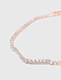 Cascade diamante bracelet Light up your Maje wardrobe with this delicately articulated bracelet, designed as a refined signature piece. With its delicate design, it traces a sparkling line of clear crystals. Enhanced by a slight V-shape where the stones increase in volume, it stands out for its polished finish and engraved clasp. For a graphic, sophisticated look, pair it with a black fine-knit high-neck top. - Cascade bracelet set with crystal-style stones - 100% fine gold-plated recycled brass chain - Slight V-shape - Crystal-style stones with a four-prong setting - Articulated links for suppleness on the wrist - Engraved box clasp Reference: MFABI01089 Composition & care Stones: 100% zirconium oxide Chain: 100% brass Do not wash Do not bleach Do not tumble dry Do not iron Do not dry clean