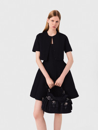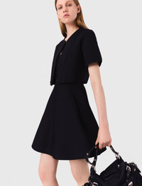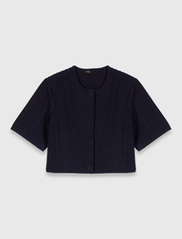 Cropped cardigan This short pointelle knit cardigan, hand-embroidered, combines delicacy and lightness. Its round neck and short sleeves add a touch of softness, while the press-stud fastening allows for easy and elegant adjustment. - Short pointelle knit cardigan - Round neck and short sleeves - Press-stud fastening - Handcrafted lacing - Designed for a cropped fit The model is 5' 10 and wears a size 1. Reference: MFPCA00606_0103 Composition & care Main material: 100% polyester Rib: 86% polyester, 12% polyamide, 2% elastane Hand wash Do not bleach Do not tumble dry Iron at a maximum temperature of 110°C without steam F/ - Professional dry clean, with hydrocarbon solvent, gentle treatment