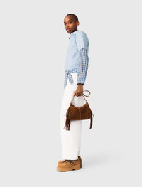 Cropped jumper with rhinestones .. Reference: MFPPU00987_0524 Composition & care Main material: 84% wool, 13% polyamide, 3% elastane Tab: 90% wool, 9% polyamide, 1% elastane Collar: 92% wool, 7% polyamide, 1% elastane Hand wash Do not bleach Do not tumble dry Iron at a maximum temperature of 110°C without steam Do not dry clean