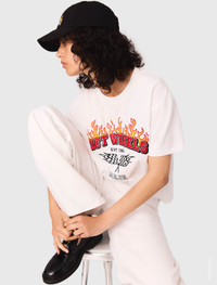 Embroidered T-shirt Hot Wheels™ x Maje This summer, Maje is teaming up with Hot Wheels™, the iconic miniature car brand and pop culture phenomenon.Parisian elegance meets racetrack energy in a collection of assertive femininity, where wardrobe essentials are inspired by motorsport themes to instil a new attitude. - Hot Wheels™ x Maje T-shirt - Short-sleeved and round-neck - Flame embroidery on front - Clover embroidery on back - Designed for a loose fit The model is 5' 9 and wears a size 1. Reference: MFPTS00965_10 Composition & care Main material: 100% cotton Embroidery: 100% polyester Rib: 98% cotton, 2% elastane Regular cycle 30° Do not bleach Do not tumble dry Iron at a maximum temperature of 110°C without steam F - Professional dry clean, with hydrocarbon solvent, normal treatment