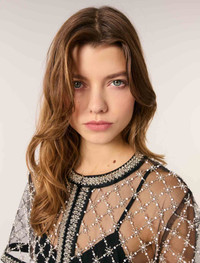 Embroidered tulle top Made from dainty tulle, this crop top features a criss-cross pattern of glittering embroidered beads for a graphic effect. The trim and mock pockets balance the interplay of see-through detailing. Versatile and assertive, it can be worn on its own or as a cardigan, layered over the removable tank top .Look glamorous day or night with jeans, a belt and pumps for effortless chic. - Short tulle top - Embroidered beads - Embroidered braid trim - Hook-and-eye fastening - Removable tank top with spaghetti straps - Designed for a boxy fit The model is 5' 10 and wears a size 1. Reference: MFPTO01114_2517 Composition & care Main material: 100% polyester Yoke: 53% polyester, 47% polyamide Interior grosgrain: 100% cotton Removable lining: 100% viscose Regular cycle 30° Do not bleach Do not tumble dry Do not iron Do not dry clean