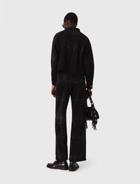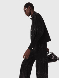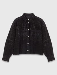 Rhinestone denim shirt This season is all about an interplay of texture and light, and the Maje studio is boldly reinventing classic pieces. Covered entirely in tone-on-tone rhinestones, this denim shirt will make your winter sparkle. With long sleeves and a button fastening, it can be worn open as an overshirt or buttoned all the way up. Add the matching jeans for a total look, with chic loafers and a fringed bag. - Black denim shirt with all-over rhinestones - Straight cut and classic structure - Long sleeves and button fastening - Two patch chest pockets - Designed for a boxy fit The model is 5' 10 and wears a size 1. Reference: MFPCM00686_2517 Composition & care Main material: 99% cotton, 1% elastane Hand wash Do not bleach Do not tumble dry Iron at a maximum temperature of 110°C without steam Do not dry clean