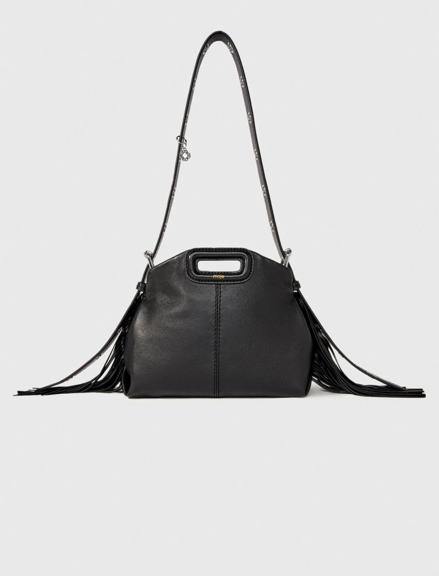 Smooth leather mini Miss M bag The latest addition to Maje's collection, Miss M is a real fashion statement. Judith Milgrom has designed a generation's It bag with the hallmarks of the classic M — rectangular leather handles, fringing and detailed topstitching. It has the cool Maje look and is designed to be a versatile accessory, coming in two sizes and a variety of fabrics and colours. Thanks to the long adjustable eyelet strap, create a variety of styles! Carry it by hand for a casual look; short or longer on your shoulder for a classic touch. Or wear it cross-body for a stylish urban vibe. The Miss M stands out for its generous bold buckles at each end of the handles and subtle piercing allowing for endless charm personalisation. This mini smooth leather version is compact with room for your essentials and comes in a palette of seasonal colours. - Mini bag with eyelet strap - 4 carrying options - Dimensions: 22 x 13 x 11 cm and strap: 115 cm - 1 interior patch pocket and flap fastening Reference: MFASA01078 Composition & care Main material: sheepskin Lining: 100% polyester Do not wash Do not bleach Do not tumble dry Do not iron Do not dry clean