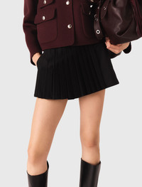 Straight-fit pleated shorts Dive into the urban world of Maje's new collection, where timeless wardrobe staples are subtly reinvented with a touch of daring. Ideal for daytime or office wear, these straight-fit wrap shorts give you a lightweight, confident look. They have a zip fastening at the back, a pleated skirt-effect panel at the front and two pockets. They're supremely chic and have a fitted silhouette with a stylish structure. Easy to mix and match, pair them with a contrasting pullover, bag, western boots and jewellery. Ref: MFPSH00496 - Wrap shorts - Pleated skirt-effect front panel - 2 pockets The model is 5' 10 and wears a size 36. Reference: MFPSH00496_2517 Composition & care Main fabric: 93% polyester, 7% elastane Underside fabric: 100% polyester Pocket lining: 100% cotton Gentle cycle 30° Do not bleach Do not tumble dry Iron at a maximum temperature of 110°C without steam F - Professional dry clean, with hydrocarbon solvent, normal treatment