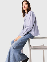 Striped bow shirt Maje stylishly reinvents wardrobe essentials, playing with volumes and fabrics. Inspired by the preppy wardrobe, this shirt with a removable contrasting collar features a pussy-bow that can be tied or worn loose, and a fine stripe print. Perfect for layering and slipping under a knit, wear it with faded jeans and accessorise with a cargo bag and leather ankle boots. - Fine-striped poplin shirt - removable Pussy-bow collar with contrasting collar - Chest pocket and buttoned cuffs - Designed for a boxy fit - Maje stylishly reinvents wardrobe essentials, playing with volumes and fabrics. Inspired by the preppy wardrobe, this shirt with a removable contrasting collar features a pussy-bow that can be tied or worn loose, and a fine stripe print. Perfect for layering and slipping under a knit, wear it with faded jeans and accessorise with a cargo bag and leather ankle boots. The model is 5' 10 and wears a size 1. Reference: MFPCM00691_2507 Composition & care Main material: 86% cotton, 14% polyamide Buttons: 100% nacre Secondary material: 100% cotton Do not wash Do not bleach Do not tumble dry Iron at a maximum temperature of 110°C without steam F/ - Professional dry clean, with hydrocarbon solvent, gentle treatment