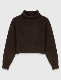 Yak blend roll-neck sweater This season is all about luxurious fabrics that combine comfort and modernity. Knitwear is available in relaxed silhouettes and refined textures, designed to bring a touch of style to your everyday life. This yak jumper is captivatingly soft and naturally warm. Its cropped fit and ribbed roll neck provide structure and a modern feel, while the long sleeves enhance its cosy, enveloping aspect. Team it with a rhinestone check skirt, ankle boots and a Miss M bag for a chic, contemporary look. - Yak knit jumper - Ribbed roll neck - Long sleeves The model is 5' 10 and wears a size 1. Reference: MFPPU00950_0609 Composition & care Main material: 76% yak, 21% polyamide, 3% elastane Collar: 72% yak, 25% polyamide, 3% elastane Hand wash Do not bleach Do not tumble dry Iron at a maximum temperature of 110°C without steam F - Professional dry clean, with hydrocarbon solvent, normal treatment