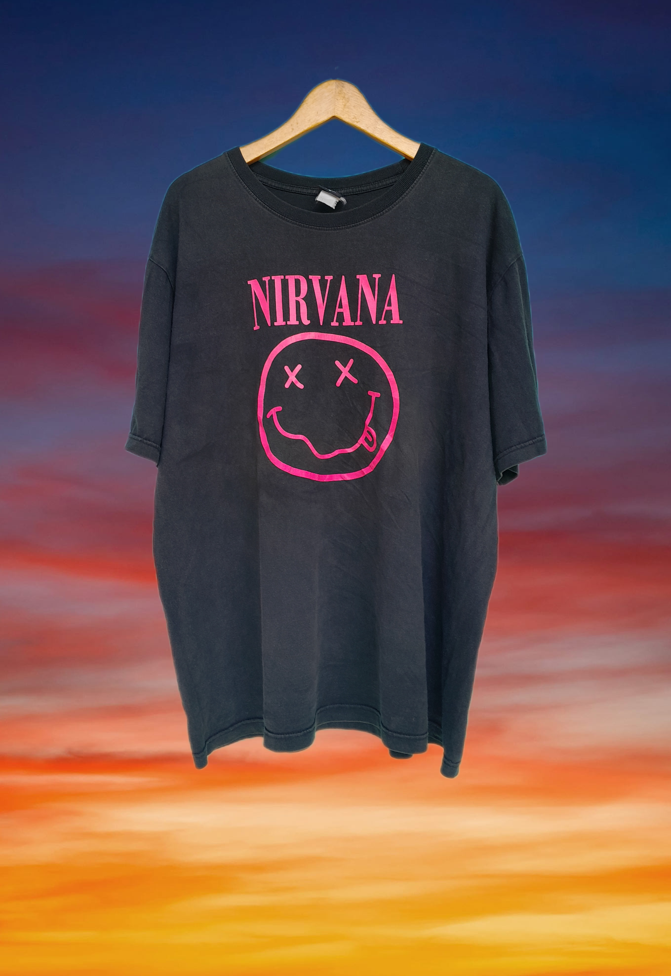 Vintage NIRVANA Smiley Face t-shirt, GTS tag XLarge fit Size, Buitl up, doble stitch. Sunfaded & crack on print, Overall Good condition. Check detailed picture (((Measurements))) Pit to pit : 25 inc / 64 cm Lenght : 30 inc / 76 cm Tag/brand : GTS tag Material : 100% Cotton Size : XL (fit XLarge) Please read description and check detailed pictures before purchase 🚫 No return 🚫 No refund #nirvana #vintage #kurtcobain #grunge #grungestyle #raptees #streetwear #hypebeast