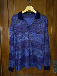 Vintage Dunhill Italy Paisley Stripe Polo Shirts Longsleeve