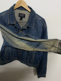 ITEM : Vintage DKNY Denim Jacket Sunfaded The condition at picture SIZE ON TAG : Sunfaded at arm refer to picture CONDITION : 7/10 got painted MEASUREMENT (laid on flat floor):- Armpit to armpit : 23.5 Shoulder to hem : 23 in *Please compare the measurement with your garment before purchase this item PAYMENT : PAYPAL ONLY SHIPPING : ECONOMY SHIPPING via.. -DHL eCommerce Asia. Transit time may take 7-14 days All transit time will depend on location & custom clearance PLEASE LEAVE THE CONTACT NUMBER as the shipping company always need the phone number for delivering NO REFUND NO RETURN Please bear in mind that this item had been used previously. Sign of wear and ages might be available on it (all defects,distress,altered ,rips, will be inform detail). Please check all pictures and ask question for any additional info before purchase. Some items are USED, VINTAGE & PRE LOVED items, so dont expect it to be like NEW condition. Dont hesitate to leave a message/email for any info Thank for dropping by