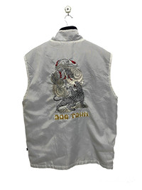 ITEM: Dogtown Sukajan Reversible Vest The condition at picture SIZE ON TAG :- CONDITION : 9/10 MEASUREMENT (laid on flat floor):- Armpit to armpit : 25 in Shoulder to hem : 30 in *Please compare the measurement with your garment before purchase this item PAYMENT : PAYPAL ONLY SHIPPING : ECONOMY SHIPPING via.. -DHL eCommerce Asia. Transit time may take 7-14 days All transit time will depend on location & custom clearance PLEASE LEAVE THE CONTACT NUMBER as the shipping company always need the phone number for delivering NO REFUND NO RETURN Please bear in mind that this item had been used previously. Sign of wear and ages might be available on it (all defects,distress,altered ,rips, will be inform detail). Please check all pictures and ask question for any additional info before purchase. Some items are USED, VINTAGE & PRE LOVED items, so dont expect it to be like NEW condition. Dont hesitate to leave a message/email for any info Thank for dropping by