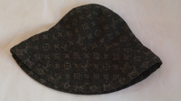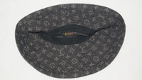this lv demin bucket hat is been worn several times and its still in good condition. and is BLACK COLOR some pictures shows blue due to too much lightening.