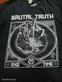 PLEASE READ THE DESCRIPTIONS AND SEE DETAIL THE PICTURE OR ASK ABOUT DETAIL AND SHIPPING COST, BEFORE BUY MY ITEM‼️ Item : BRUTAL TRUTH end time Tag : tripleA ... LARGE ...57-70cm Condition: no vintage build up shirt little bit faded no hole no stain little cracking on print doublestich all condition its good Payment : Paypal Only I ready to ship in 1-2 Day After Complete Payment Estimated delivery : * Canada / New Zealand / Australia: 2-4 weeks and more * USA : 7-21 business days * EUROPE : 7-21 business days * ENGLAND : 7-21 business days * ASIAN ; 7-21 business days PLEASE ... give me your phone number because the post office always ask about buyer phone number if you want this stuff. TRACKING NUMBER WILL BE GIVEN AFTER POSTAGE. Looking for serious buyer, Thanks for view and have a nice day.