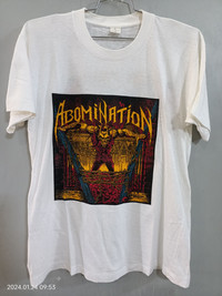 PLEASE READ THE DESCRIPTIONS AND SEE DETAIL THE PICTURE OR ASK ABOUT DETAIL AND SHIPPING COST, BEFORE BUY MY ITEM‼️ Item : VINTAGE 90S ABOMINATION SHIRT 1st album 1st print Tag : 53-68cm Condition: vintage no build up shirt no faded no hole no stain minor cracking on print singlestich all condition its good excellent condition for old tee Payment : Paypal Only I ready to ship in 1-2 Day After Complete Payment Estimated delivery : * Canada / New Zealand / Australia: 2-4 weeks and more * USA : 7-21 business days * EUROPE : 7-21 business days * ENGLAND : 7-21 business days * ASIAN ; 7-21 business days PLEASE ... give me your phone number because the post office always ask about buyer phone number if you want this stuff. TRACKING NUMBER WILL BE GIVEN AFTER POSTAGE. Looking for serious buyer, Thanks for view and have a nice day.