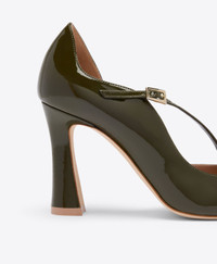 A new silhouette, reimagined with sculptural precision. This season, Malone Souliers introduces the Bettina pump in high-shine patent leather with a sharply pointed toe and D’Orsay cutaway. A slender diagonal strap and flared 90mm block heel nod to the collection’s refined take on vintage glamour. - Colour: Olive - Material: Patent - Sole and Lining: 100% Leather - Style: Heeled Pumps - Handmade in Italy - Fitting: Fits large to size, half size down is recommended SIZE & FIT - Fits large to size, half size down is recommended - Italian sizing - Model wears size IT37, US7, UK4 - Heel height 90mm/3.5in