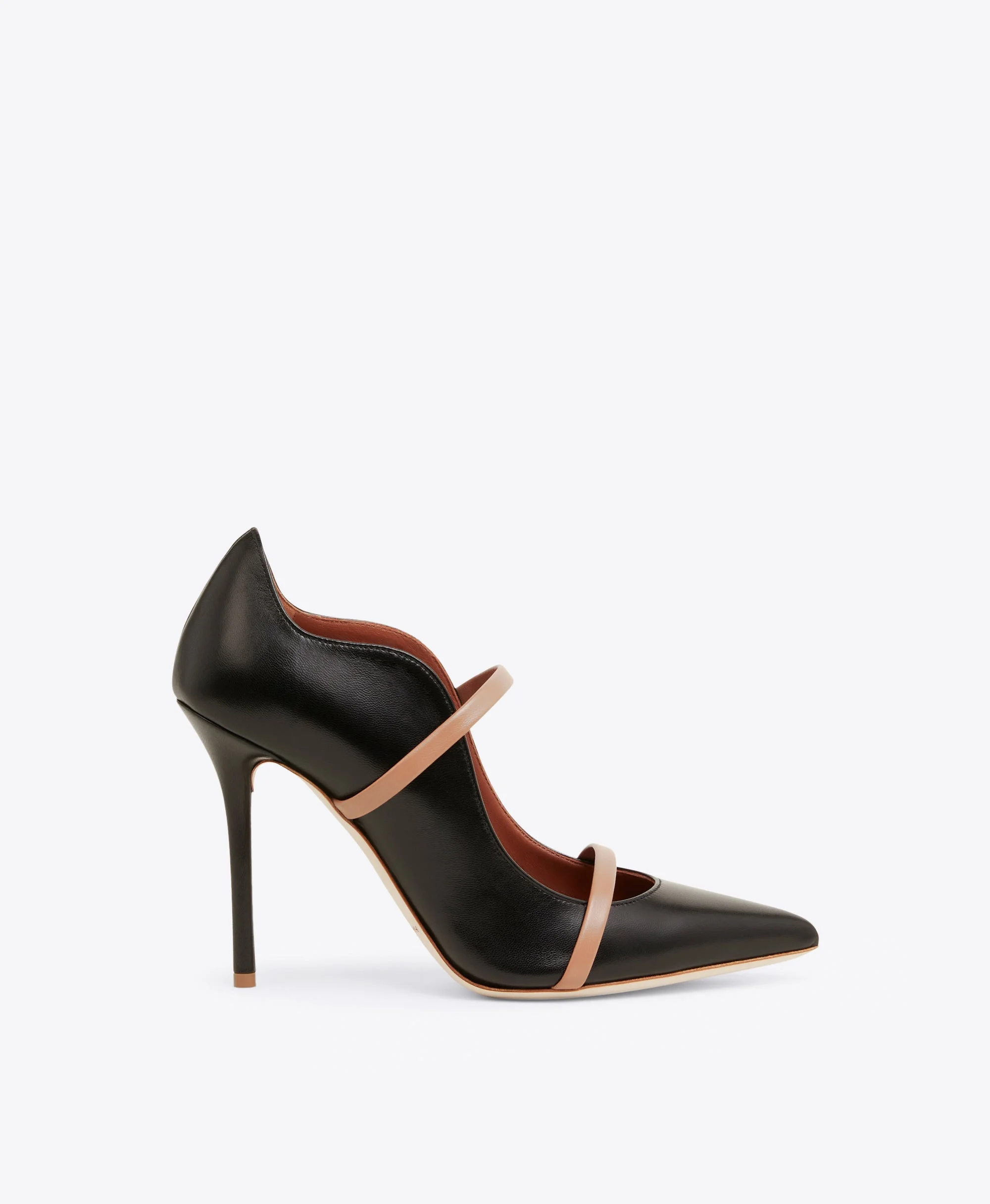 An icon of feminine sophistication, we made our name with the Maureen. A stiletto heel in black nappa leather with an unmistakeable wave-like silhouette, the Maureen combines graceful lines with superior comfort. Dispensing with the usual backless design in favour of a closed heel, it is finished with a padded insole and stretchable arch strap in contrasting nude leather. - Colour: Black/Nude - Material: Nappa/Nappa - Sole and Lining: 100% Leather - Style: Stiletto Heel - Handmade in Italy - Fitting: Fits small to size, take half a size larger SIZE & FIT - Fits small to size, take half a size larger - Italian sizing - Model wears size IT37, US7, UK4 - Heel height 100mm/4in