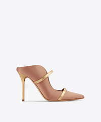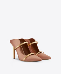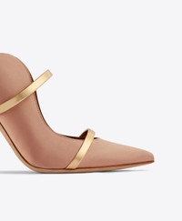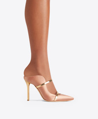 An icon of feminine sophistication, we made our name with the Maureen. A nude satin mule with an unmistakeable wave-like silhouette, the Maureen combines graceful lines with superior comfort. Its backless design and towering 100mm heel are complemented by contrasting gold mirror leather straps. - Colour: Blush/Gold - Material: Satin/Mirror Leather - Sole and Lining: 100% Leather - Style: Heeled Mule - Handmade in Italy - Fitting: Fits small to size, take half a size larger SIZE & FIT - Fits small to size, take half a size larger - Italian sizing - Model wears size IT37, US6.5, UK4, FR38 - Heel height 100mm/4in