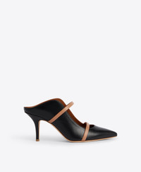 An icon of feminine sophistication, we made our name with the Maureen. A heeled mule in black nappa with an unmistakeable wave-like silhouette, the Maureen combines graceful lines with superior comfort. The backless design and elegant 70mm heel are complemented by a padded insole and stretchable straps in contrasting nude leather. - Colour: Black/Nude - Material: Nappa/Nappa - Sole and Lining: 100% Leather - Style: Heeled Mules - Handmade in Italy - Fitting: Small to size, half a size up is recommended SIZE & FIT - Fits small to size, take half a size larger - Italian sizing - Model wears size IT37, US7, UK4 - Heel height 70mm/2.7in