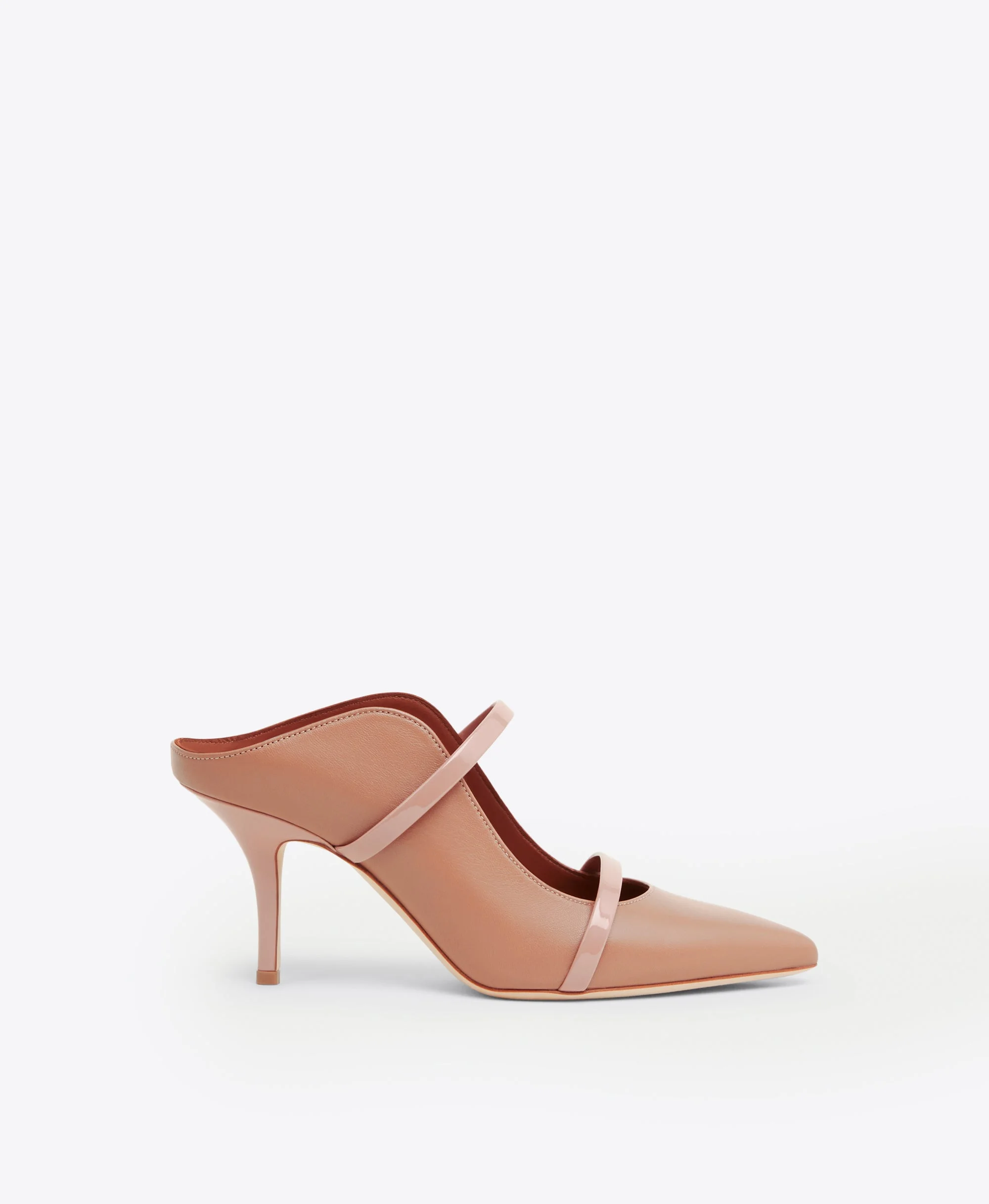 An icon of feminine sophistication, we made our name with the Maureen. A heeled mule in nude nappa with an unmistakeable wave-like silhouette, the Maureen combines graceful lines with superior comfort. The backless design and elegant 70mm heel are complemented by a padded insole and stretchable straps in contrasting blush patent leather. - Colour: Nude/Blush - Material: Nappa/Patent - Sole and Lining: 100% Leather - Style: Stiletto Mule - Handmade in Italy SIZE & FIT - Fits small to size, take half a size larger - Italian sizing - Model wears size IT37, US7, UK4 - Heel height 70mm/2.7in