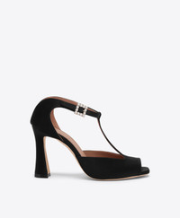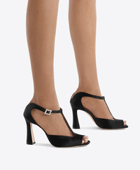 Nomi 90 Black Satin T-Bar Sandals