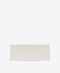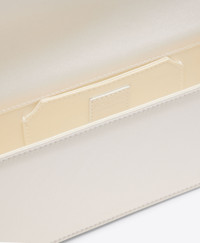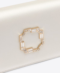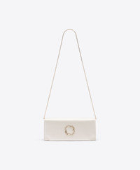 Handcrafted for life's most meaningful moments. Vivien returns for the new season in ivory satin. Softly structured and finished with a crystal-embellished crest buckle that catches the light, its compact silhouette brings a sense of glamour to every occasion. - Colour: Ivory - Material: Satin - Lining: Satin - Style: Clutch Bag - Handmade in Italy SIZE & FIT - Width: 27cm - Depth: 6.5cm - Height: 12cm - Additional chain drop: 47cm