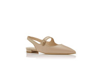 Beige Nappa Leather Slingback Flat Pumps
